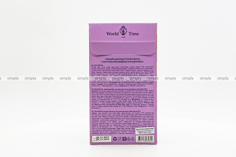 В нашем интернет-магазине Вы можете купить "Шоколад горький World & Time «FRUIT&NUTS» с натуральной ежевикой и фундуком 80 гр" по низкой оптовой цене с быстрой и удобной доставкой в г.Новосибирск (Новосибирская область). Мы предлагаем широкий ассортимент импортных сладостей и напитков от проверенных поставщиков и реализуем продукцию во всех регионах РФ.